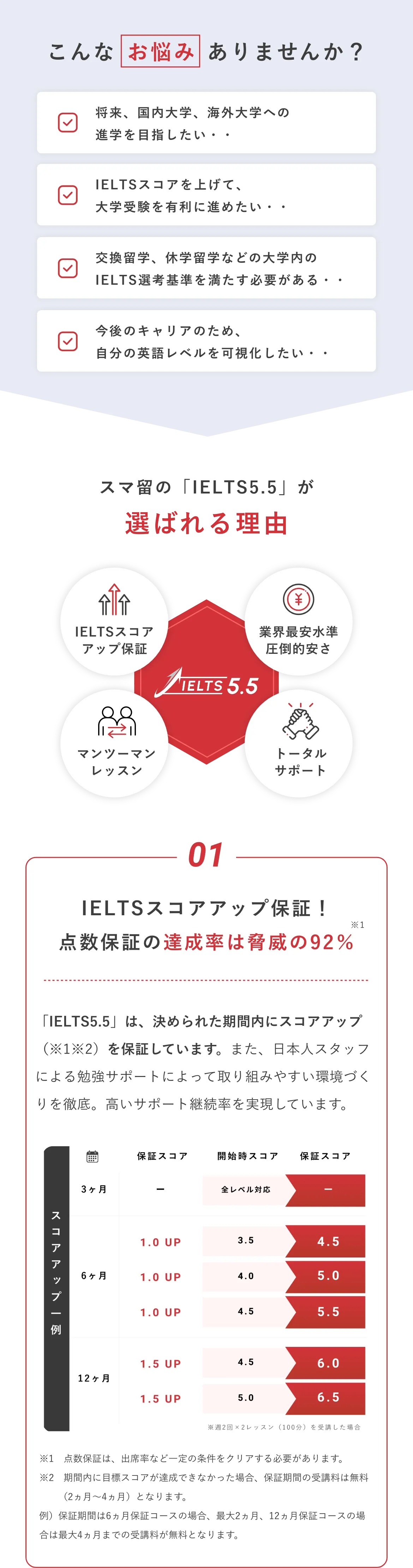 IELTS5.5をご案内している「スマ留」は留学エージェントサービスとなり、短期・長期留学やワーキングホリデー、マレーシアの大学進学など幅広くサポートしております。留学や進学を検討している際は、気軽にご相談ください。