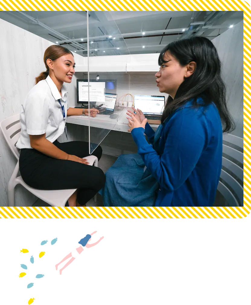 フィリピン留学の授業の半分は先生とのマンツーマン授業です。一般的なグループ授業とは異なり、他人に頼らず英語でコミュニケーションをとらなければいけません。圧倒的に英語を話す時間が増えるので、短期間でスピーキング中心の英語力向上が望めます。 - 短期集中型の合宿スタイル!