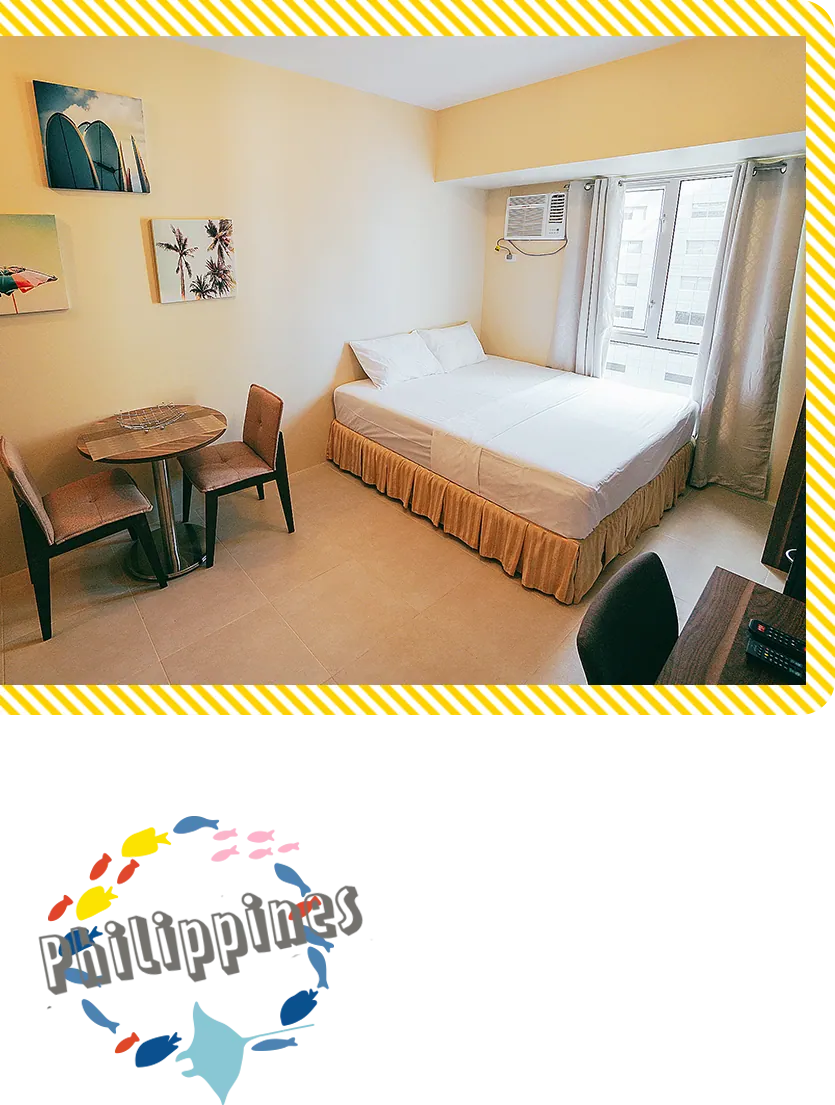 フィリピンの学生寮で「清潔感が不足していた」「通学が面倒だった」との声を受け、スマ留専用の学生寮を展開しました。2019年新設のプールやコンビニを併設した快適な高層学生寮です。また、1人部屋または2人部屋を提供し、プライバシーが確保されていて、語学学校での学習後に、ここでゆっくりと疲れを癒せます。