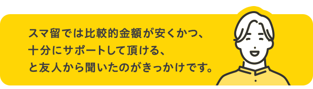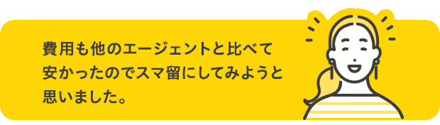A留学前〜帰国後までにでてくる悩みなどもプロの留学カウンセラーに相談することができるということです。しかも、自分で留学しようとすると、英語で海外の学校とやり取りする必要がありますが、スマ留経由であれば、全て日本語でやり取りすることが可能です。